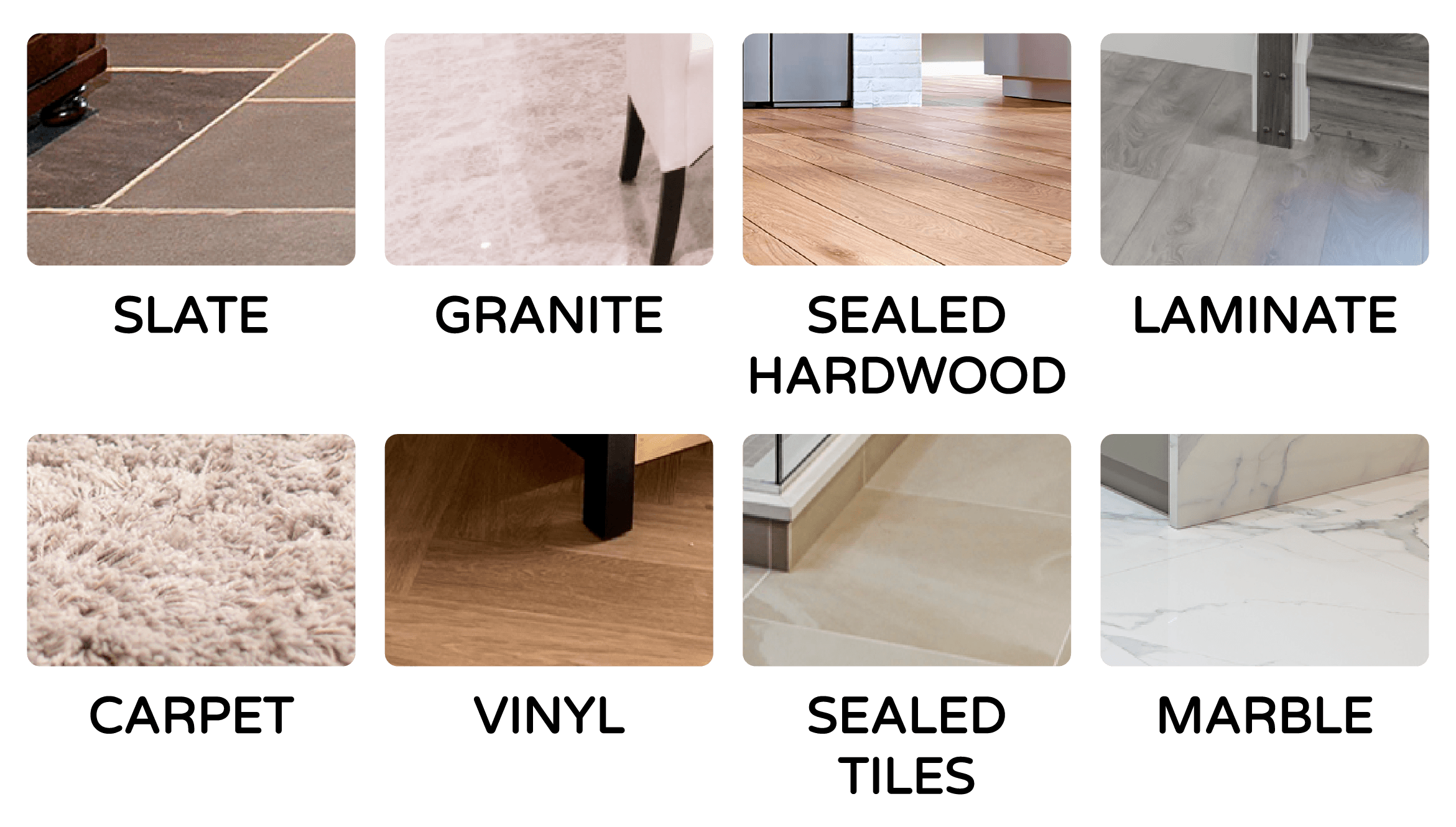 The H2O HD® is designed to thoroughly clean floor surfaces, such asmarble, ceramic, stone,tile,linoleum, sealed hardwood floors and parquet. Not all floor types are suitable for steam cleaning.
